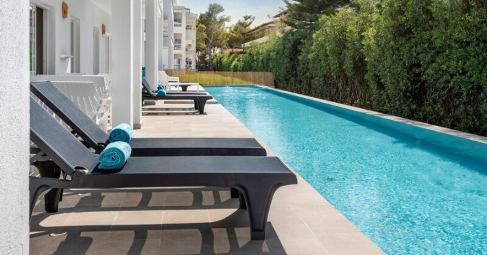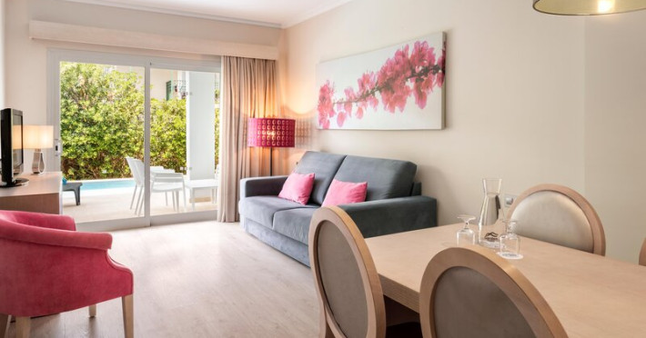 2 suites, 225 apartments and 1 double room are available to guests in a 3-storey main building and 9 auxiliary buildings. Multilingual staff (English, German, French) at the reception desk in the lobby are ready to assist you with check-in and check-out. Guests receive a welcome drink upon arrival. Services such as a baggage storage service and a drinks machine ensure a comfortable stay. Wireless internet access (no extra charge) is provided in public areas. The tour desk offers assistance with booking excursions. The apartment hotel has a range of facilities for guests with disabilities. The hotel has wheelchair-accessible facilities and 9 lifts. The grounds of the hotel feature a playground and a lovely garden. Guests arriving by car can park their vehicles in the car park for no extra charge. Further services include a babysitting service (on request and for a fee), a car hire service, medical assistance, a transfer service, an alarm call service, a laundry service, a page service and a hotel doctor. Active guests who wish to explore the surrounding area by bike will appreciate the bicycle hire service (for a fee). Bicycle storage is also available for no extra charge. A business centre with fax machine, projector, a flip chart and pens and photocopier is available. The conference room is available for conferences, lectures and meetings. . This comfortable apartment complex is located directly by the fine sand beach of Playa de Muro and is close to Albuferas nature reserve. The centre of Alcudia, with numerous entertainment and shopping opportunities, restaurants, bars and cafés, is around 8 km away. The next public transport stop is 50m away. . Rooms are equipped with air conditioning (no extra charge) and adjustable central heating. In most units, guests can enjoy a partial sea view from a balcony or terrace. Most units have a sea view. Guests are sure to get a good nights sleep in the sofa bed. Separate bedrooms are available. Childrens beds can be provided at no extra charge upon request. A desk and, for a fee, a safe are also available. For self-catering guests, there is a well-equipped kitchenette with a mini fridge, stovetop, microwave and tea/coffee station. An ironing set is provided for guests convenience. A direct dial telephone, a flatscreen television with satellite/cable channels, an alarm clock and WiFi (no extra charge) are provided as well. Bathrooms are equipped with a shower, a bathtub and a whirlpool bath. A hairdryer and a vanity mirror are available for daily use. For extra comfort in the bathrooms, guests are offered cosmetic products. Guests can also book 5 wheelchair-friendly rooms with wheelchair-accessible bathrooms. . Dining facilities include a dining room and a breakfast room. Guests can dine at the restaurant (non-smoking, a buffet, air conditioning and high chairs). Refreshing drinks at the beach bar are a perfect way to enjoy warm weather. Catering options include bed and breakfast, half board and all-inclusive. Among the advantages of an all-inclusive stay are various offers, including a selection of alcoholic and non-alcoholic beverages. A continental breakfast buffet provides many delicious reasons to rise and shine. At lunch and dinner, guests serve themselves at the buffet. Gluten-free meals, vegetarian dishes, childrens meals, organic food, lactose-free food and vegan food can be prepared on request. The hotel also offers snacks. The show cooking is a particularly special attraction. For guests, international brands are included. . There are indoor and outdoor pools (for a fee) and a childrens swimming area. Pure relaxation in the hot tub (no extra charge), fun on the waterslide and refreshing drinks at the pool bar â guests will experience just how rich and varied a day in the water can be. A short break or an entire afternoon on the sun terrace, which features sun loungers and parasols, is time well spent. The apartment hotel offers an extensive outdoor sport and leisure programme, which includes tennis, bocce, beach volleyball, volleyball, archery, Nordic walking and jogging. For a fee, guests can also enjoy cycling/mountain biking, paddle tennis, paragliding, fishing and horse riding. A number of sports are available, including water sports such as water aerobics and aquafit. For a fee, guests can also enjoy water skiing, windsurfing, kitesurfing, jet skiing, motorboat rides, paddle boating, banana boat rides, canoeing, sailing, catamaraning, kayaking, snorkelling, diving and parasailing. The hotel offers numerous indoor sports, including a gym, table tennis, darts, yoga, callisthenics, aerobics and pilates or, for a fee, billiards. There is a wellness area with a spa, a sauna and a hammam and, for an additional fee, a spa, a beauty salon, massage treatments, Ayurveda treatments and aromatherapy. Additional leisure activities include an entertainment programme, a kids club, a kids disco and live music. . The apartment hotel accepts the following credit cards: American Express, VISA and MasterCard.Datorita dinamicitatii domeniului disponibilitatea ofertelor se modifica de la un moment la altul. De aceea ofertele sunt valabile in limita locurilor disponibile. Agentia nu este responsabila pentru eventualele neconcordante care pot aparea intre informatiile privind tarifele si alte detalii din site si informatiile primite in agentie. In aceste cazuri vor avea prioritate, intotdeauna, informatiile primite in agentie.