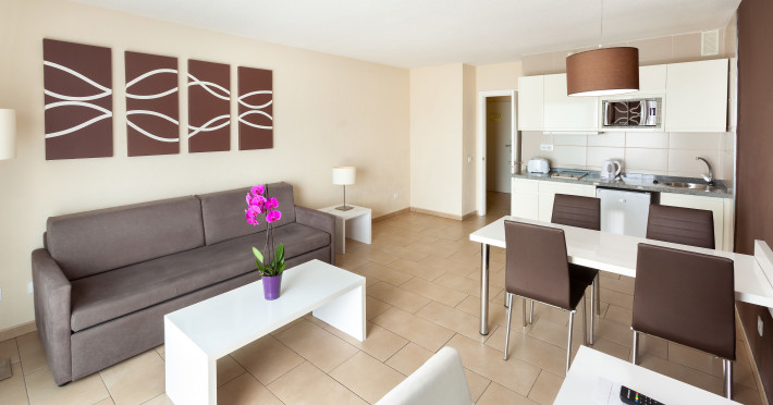 Camerele sunt amenajate cu o sufragerie, o bucătărie și o baie, de asemenea, un aparat de aer condiționat și un ventilator contribuie la o atmosferă agreabilă. În majoritatea camerelor se găsește câte un balcon. Camerele au un pat dublu sau o canapea. Sunt disponibile dormitoare separate. În plus, pentru cei mici sunt disponibile paturi pentru copii. De asemenea, sunt disponibile un seif, un minibar și un birou. Datorită unui frigider, unui minifrigider, unui cuptor cu microunde și unui aparat pentru cafea/ceai, chicineta este bine echipată pentru cei ce se aprovizionează singuri. Un telefon cu apelare directă, un televizor cu canale prin satelit/cablu TV, consola video și WiFi-ul (gratuit) oferă un concediu confortabil. Băile dispun de un duș, de o cadă și de o cadă cu hidromasaj. Un uscător de păr și halate de baie stau la dispoziție pentru folosința zilnică. Se oferă spre rezervare camere adaptate pentru scaun cu rotile. Pentru familiile cu copii stau la dispoziție camere de familie.