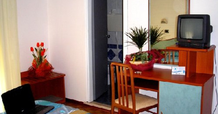 Facilitati hotel: parcare, garaj, solar, inchiriere de biciclete, lift, terasa, restaurant, bar, receptie, camera de relaxare, TV-lounge, internet wi-fi, aer conditionat, si animatie langa plaja.