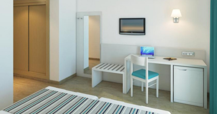 Located on a beautiful boulevard in Paguera, this hotel is just 100 metres from the splendid beach and a short 5-minute walk from a number of bars, restaurants and shops in one of the most popular tourist areas in the south of the island of Mallorca. The regular local bus service allows guests easy access to the capital in under 20 minutes, as well as the worthwhile sightseeing attractions in the neighbouring town of Andraitx. The airy elegant rooms are furnished with natural materials and textures and bring the outdoor in, with fresh white and blue colours, to create a truly relaxing setting. Whether they have just been lounging at the beach, trying the water sports facilities or having a diving lesson, guests can relax with a drink on the private balcony or dine in luxury in the on-site restaurant for the perfect ending of a perfect day..The hotel is located on a beautiful boulevard in Paguera and is only a few metres from bars, restaurants and shops. The inviting beach is located just 100 m away, easily reached within walking distance. With the regular local bus service, guests will easily reach Palma as well as the worthwhile sightseeing attractions in the neighbouring town of Andraitx..The functional rooms are equipped with an en suite bathroom, a direct dial telephone, TV, a balcony/ terrace and a hire safe. The family rooms are more spacious and offer enough space for 4 beds. The maximum occupancy in the rooms is 3 adults and 1 child..Guests are offered breakfast and evening meals in the form of a buffet. It is possible to book a half-board stay..MasterCard and VISA are both accepted as methods of payment..On payment of an additional fee, guests may make use of the large tennis centre in town. During the summer months, guests also have the opportunity to choose from the water sports facilities available on the beach. Here, guests will also find a diving school.Datorita dinamicitatii domeniului disponibilitatea ofertelor se modifica de la un moment la altul. De aceea ofertele sunt valabile in limita locurilor disponibile. Agentia nu este responsabila pentru eventualele neconcordante care pot aparea intre informatiile privind tarifele si alte detalii din site si informatiile primite in agentie. In aceste cazuri vor avea prioritate, intotdeauna, informatiile primite in agentie.