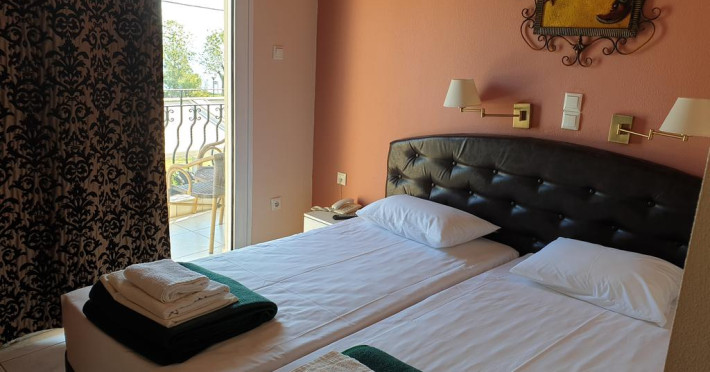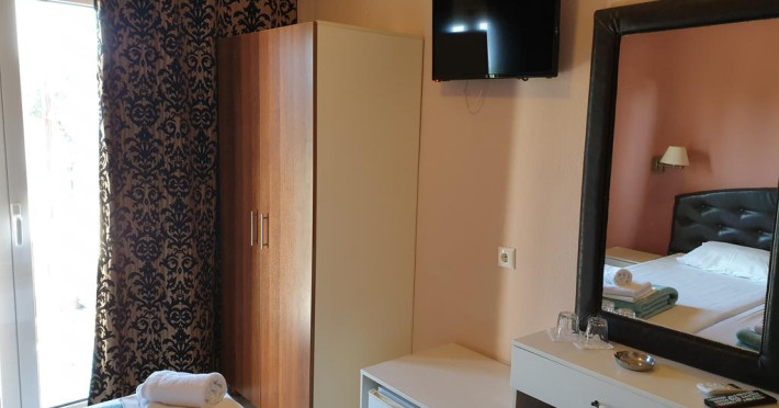 Sunt disponibile 23 camere. În camere există baie cu cadă sau duș prevăzută cu foehn. Unele camere au balcon cu vedere la mare, unde oaspeții pot admira apusul sau răsăritul soarelui. Camerele confortabile de la Plaza au pardoseală de gresie/ marmură, aer condiționat, Tv cu canale prin satelit și seif. Oaspeții au acces gratuit la serviciul Wi-fi în camere. Fiecare unitate de cazare are frigider.