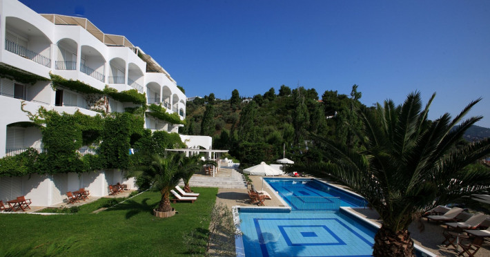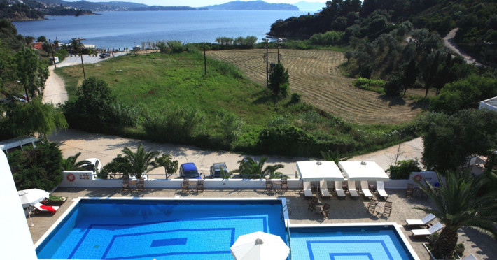 Plaza este o proprietate de 3 stele situată în Kanapitsa (Skiathos) care oferă camere cu vedere la mare, un restaurant, o piscină în aer liber și o terasă cu șezlonguri și umbrele de soare. Proprietatea are servicii de închirieri auto. Se oferă acces gratuit la internet Wi-fi în spațiile publice. Parcarea este disponibilă la proprietate gratuit.