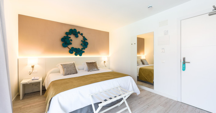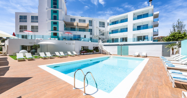 Around 100 m from a beach is located the hotel PLAZA SANTA PONSA Boutique Hotel. The city centre is also just a few steps away. The air-conditioned hotel has a 24h reception, a lobby bar, Wi-Fi, an internet corner, a lift as well as a jacuzzi. In the outdoor area you will find a pool that is open seasonally (open all year), where sun loungers and sun umbrellas are available for free. Furthermore, you can relax outdoors on the sun terrace. You can store your valuables in the safe, and your luggage in the hotel`s storage room. There is also a laundry service available at an additional cost to customers as well as an ironing service. If necessary, you can contact the medical centre (for a fee). For conventions and other business meetings, the hotel offers a conference area. If you want to explore the holiday region, you can use the car rental service close to the hotel (extra fee). Due to its barrier-free facilities , such as wheelchair accessible rooms and wheelchair-accessible bathrooms, the hotel is also suitable for wheelchair users. Catering As catering services the hotel offers half board and breakfast only. Breakfast is offered from the buffet. Enjoy your lunch as a set meal. Dinner is also served as a buffet or à la carte. For the meals, there are a restaurant (Mediterranean and gluten-free dishes) and the pool bar. Distances