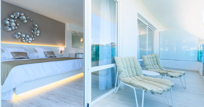 Around 100 m from a beach is located the hotel PLAZA SANTA PONSA Boutique Hotel. The city centre is also just a few steps away. The air-conditioned hotel has a 24h reception, a lobby bar, Wi-Fi, an internet corner, a lift as well as a jacuzzi. In the outdoor area you will find a pool that is open seasonally (open all year), where sun loungers and sun umbrellas are available for free. Furthermore, you can relax outdoors on the sun terrace. You can store your valuables in the safe, and your luggage in the hotel`s storage room. There is also a laundry service available at an additional cost to customers as well as an ironing service. If necessary, you can contact the medical centre (for a fee). For conventions and other business meetings, the hotel offers a conference area. If you want to explore the holiday region, you can use the car rental service close to the hotel (extra fee). Due to its barrier-free facilities , such as wheelchair accessible rooms and wheelchair-accessible bathrooms, the hotel is also suitable for wheelchair users. Catering As catering services the hotel offers half board and breakfast only. Breakfast is offered from the buffet. Enjoy your lunch as a set meal. Dinner is also served as a buffet or à la carte. For the meals, there are a restaurant (Mediterranean and gluten-free dishes) and the pool bar. Distances- Airport: approx. 30 km