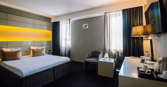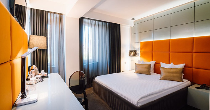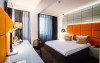 Camera Double Twin Superior ofera un spatiu mai generos si facilitati premium, fiind potrivita pentru oaspetii care cauta un plus de confort. Camera este dotata cu un pat matrimonial luxos, lenjerie de calitate superioara si un birou de lucru elegant.