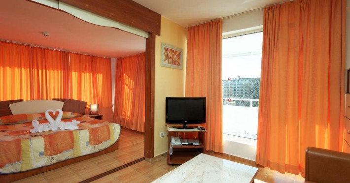 Toate camerele dispun de balcon cu masa si scaune, aer conditionat, Wi-Fi gratuit, frigider, TV cu programe prin cablu, telefon, baie cu dus, uscator de par (la cerere de la receptie, gratuit).