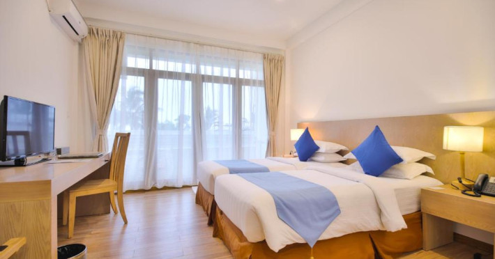 Fiecare cameră cu aer condiționat este prevăzută cu balcon. De asemenea, există un loc de luat masa. Baia privată are uscător de păr. Camerele oferă vedere la mare. Facilitățile includ o zonă de relaxare și minibar.