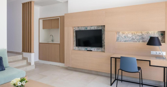 Hotelul Plus Fariones Suite are un restaurant tip bufet și un snack bar langă piscină. In apropiere sunt magazine și restaurante.