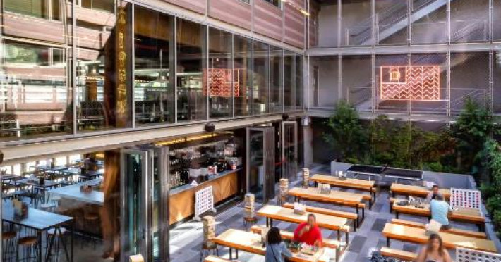 Salvation Taco servește preparate din bucătăria internațională pentru micul dejun, pranz și cină. Localul are mese in interior, in aer liber și pe acoperiș. Pod Brooklyn oferă un lounge/zonă de lucru la mezanin, unde oaspeții pot savura gustări și cafea in timpul zilei.