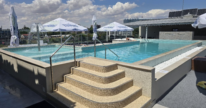 Sky Bar-ul de la etajul 5 si piscina exterioara (se deschid dupa data de 20 Iunie 2025).