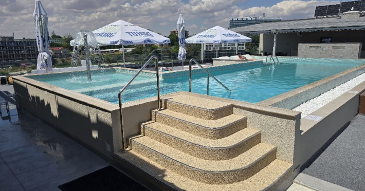 Etajul 5 are in dotare piscina infinity pool si terasa cu bar, ce pun la dispozitia turistilor mai multe facilitati: