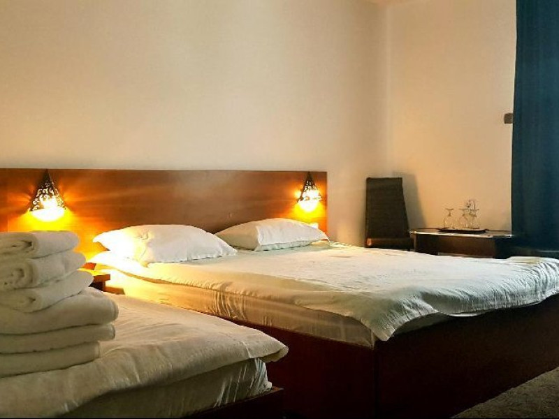 Restaurantul in regim a la carte servete diverse tipuri de preparate romaneti traditionale, iar oaspeii au la dispoziie un bar si spatii de luat masa in aer liber.