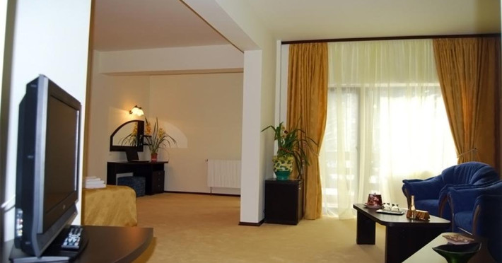 Situare: Complexul Hotelier Poiana Ursului 4* este amplasat intr-o zona linistita a statiunii, in apropierea Complexului Favorit si nu departe de partiile de schi si de principalele mijloace de transport pe cablu. Hotelul iese in evidenta prin arhitectura unica si prin confortul deosebit al camerelor. Amplasat la 35 minute de centrul istoric si comercial al Brasovului, la o distanta de 12 km, insa ferit de agitatia orasului, hotelul se remarca prin dotari de exceptie. Imbinand eleganta si utilitatea, hotelul ofera clientilor sai servicii de calitate si conditii deosebite de cazare.Info: In mijlocul naturii, intr-o oaza din imparatia muntilor, complexul hotelier ,,Poiana Ursului este destinatia ideala de vacanta sau pentru organizarea unor intalniri de afaceri ori evenimente festive, in orice anotimp.