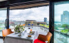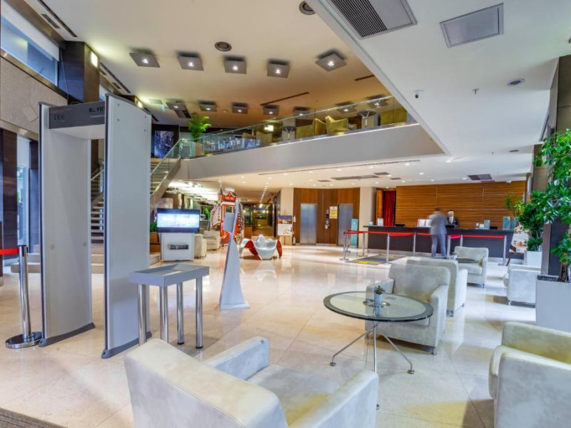 Pentru călătorii business, hotelul dispune de săli de conferințe moderne și un business center complet echipat, completand perfect facilitățile de relaxare precum barul de pe acoperiș cu vedere spectaculoasă asupra orașului.