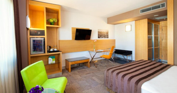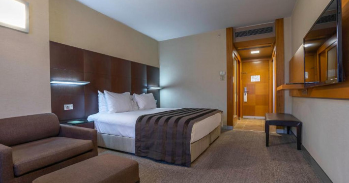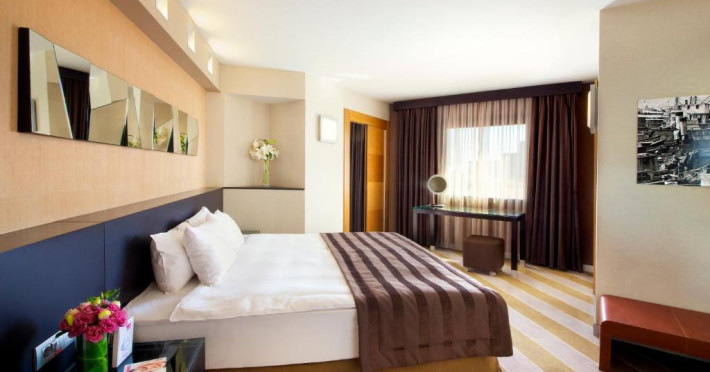 Camerele elegante combină confortul contemporan cu priveliști panoramice asupra orașului și Bosforului. Oaspeții se pot bucura de centrul spa cu piscină interioară, sala de fitness și diverse opțiuni de dining, inclusiv un restaurant panoramic la ultimul etaj.