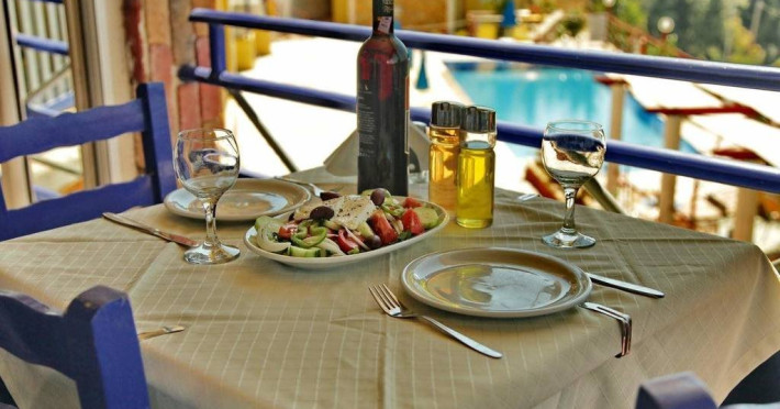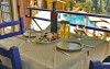 Restaurantul ofera preparate grecesti si mediteraneene si are vedere la mare si la imprejurimile inverzite.