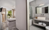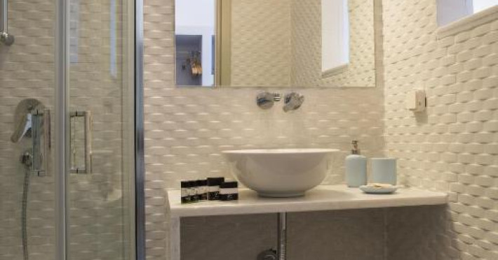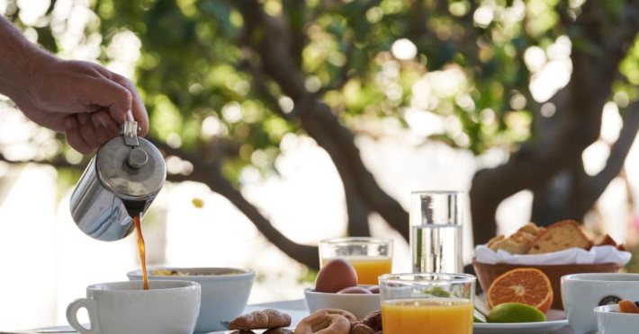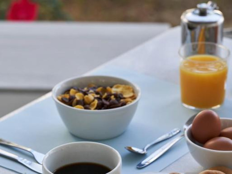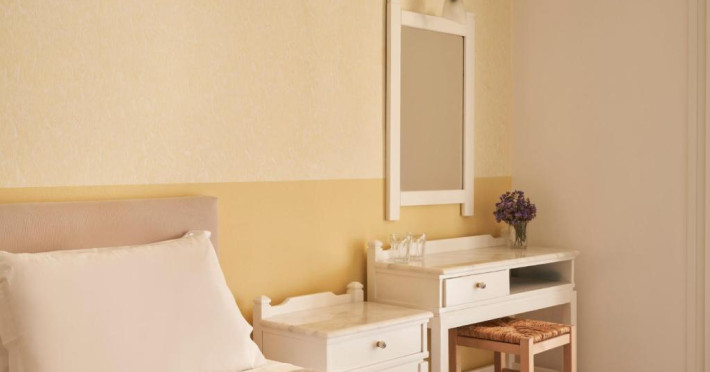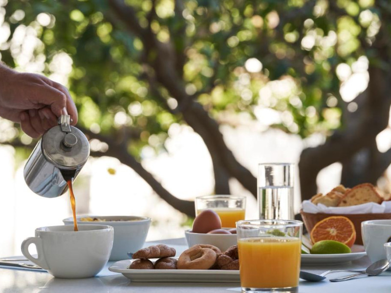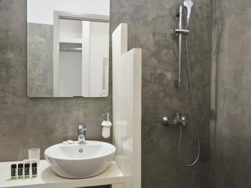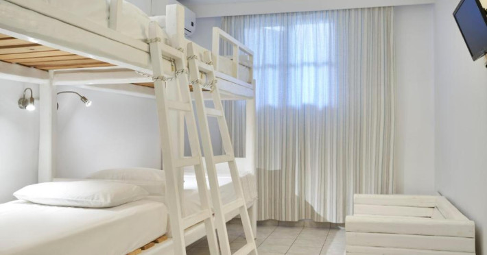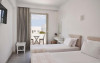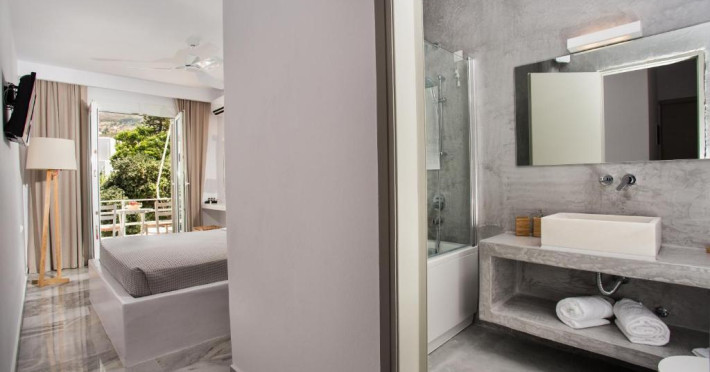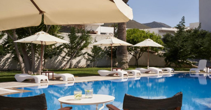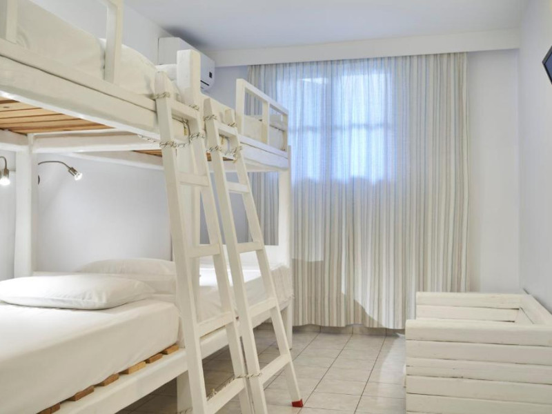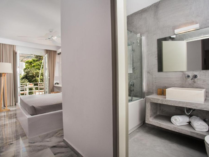 Camerele luminoase sunt decorate in nuanțe mediteraneene și sunt dotate cu balcon sau terasă, aer condiționat, TV prin satelit și mini-frigider. Oaspeții se pot bucura de micul dejun servit langă piscină, intr-o atmosferă relaxantă specifică insulelor grecești.