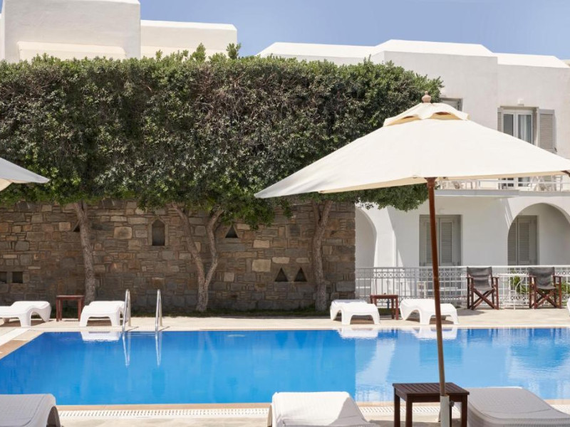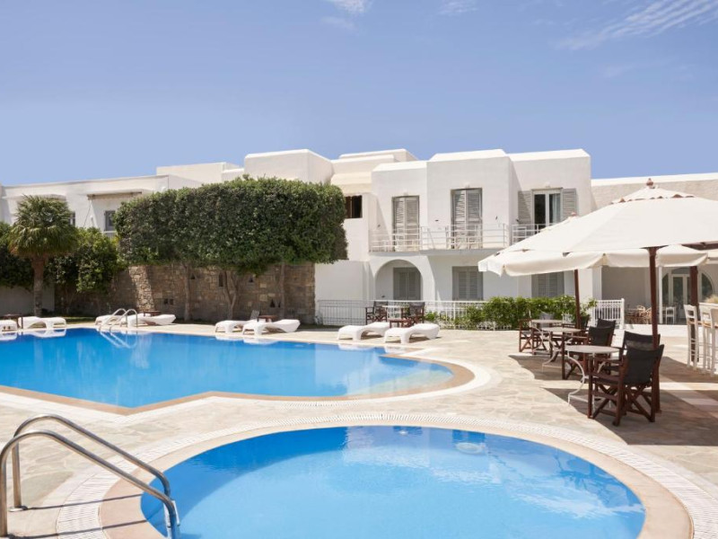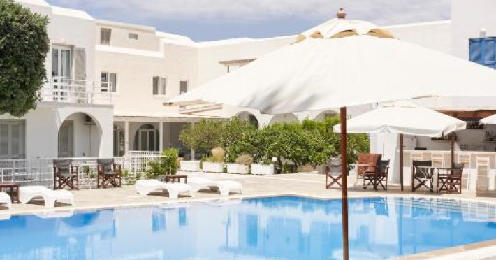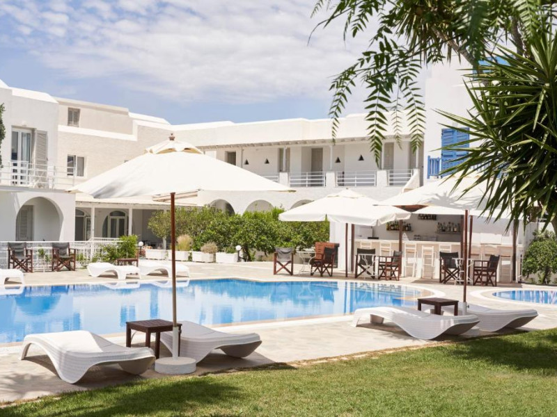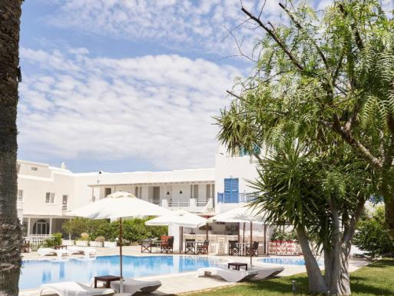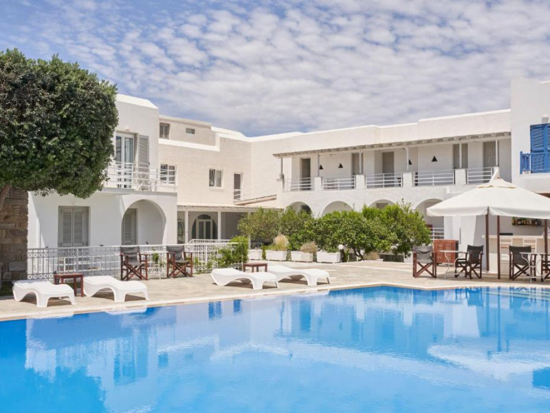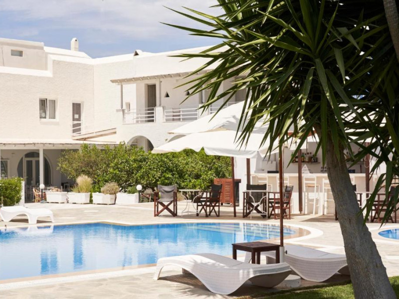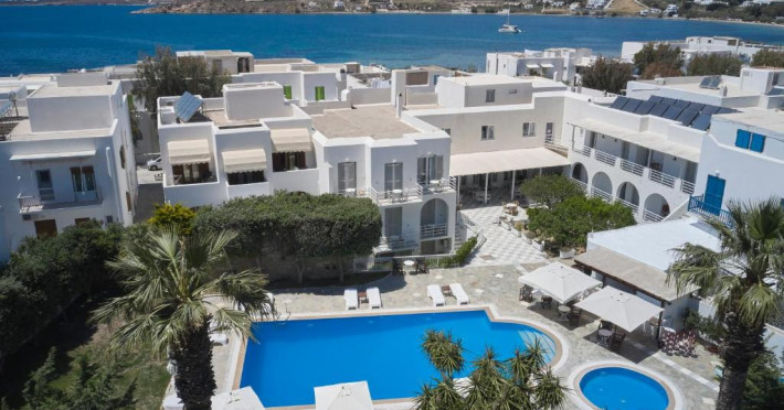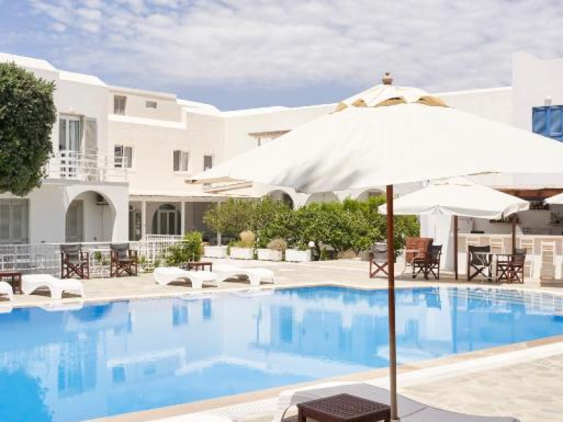 Hotelul dispune de piscină in aer liber cu șezlonguri și umbrele, snack bar și grădină. La doar cațiva pași se află portul principal din Parikia, de unde puteți lua feribotul către alte insule, precum și numeroase taverne tradiționale și magazine.