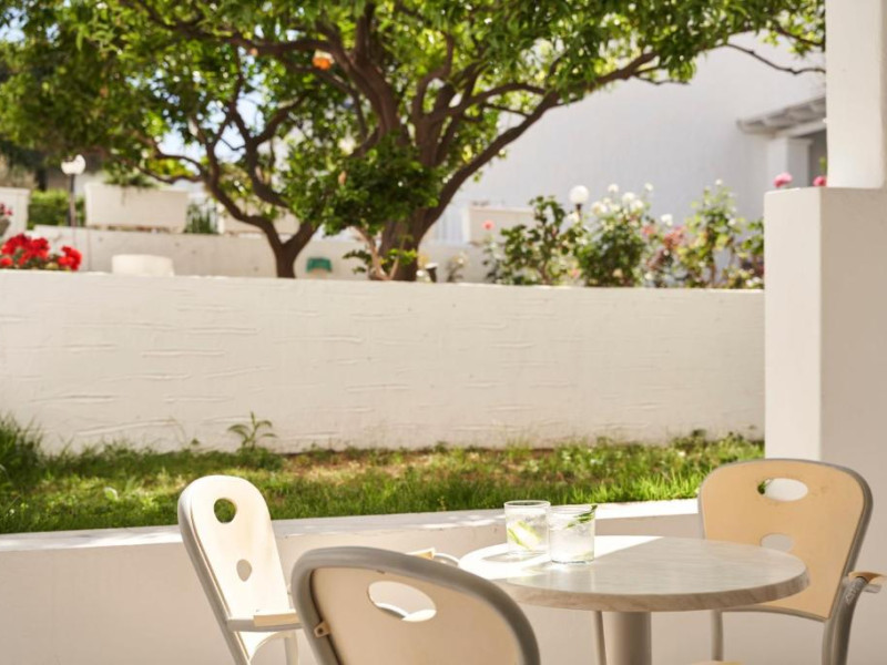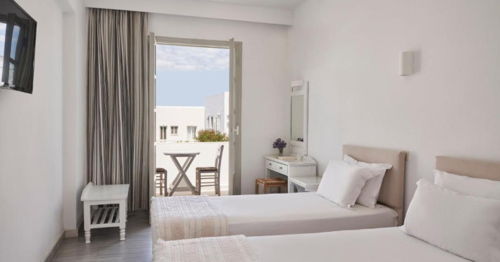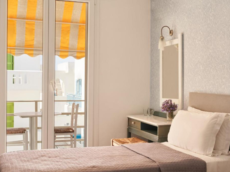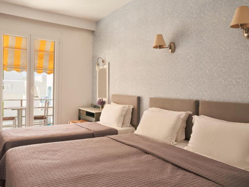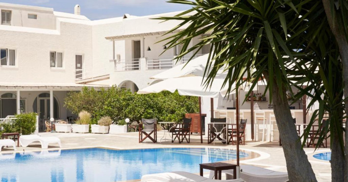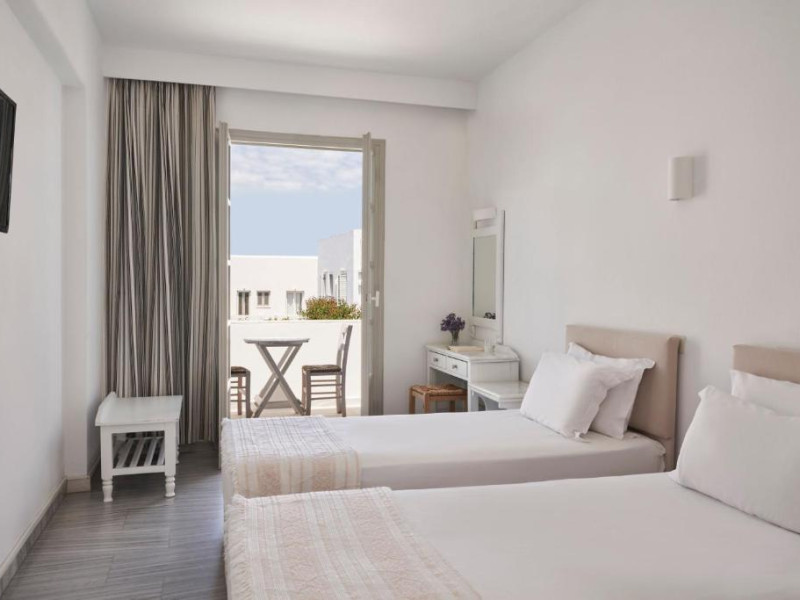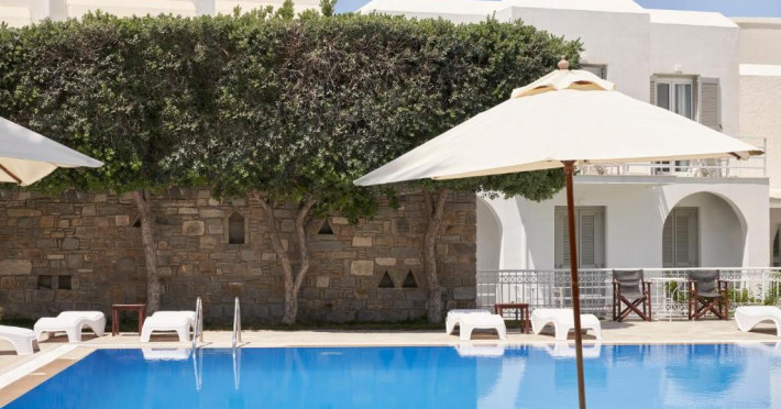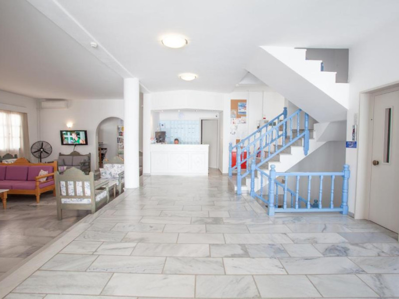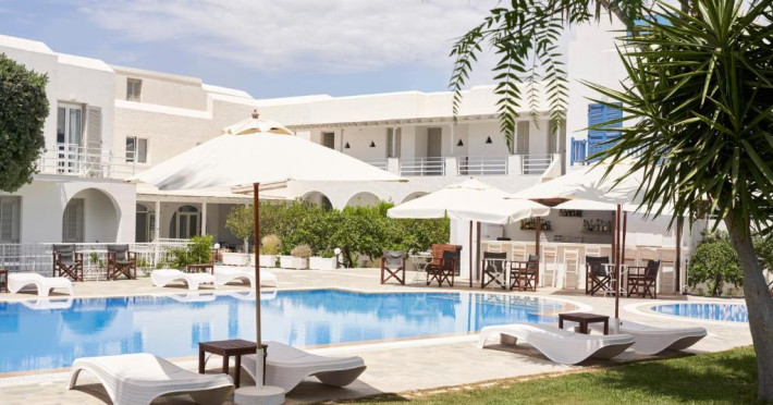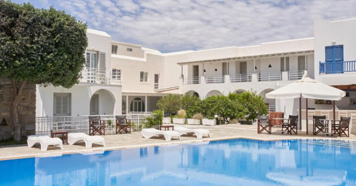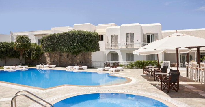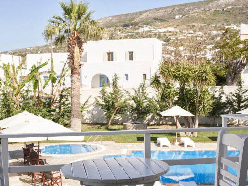 Hotelul dispune de piscină in aer liber cu șezlonguri și umbrele, snack bar și grădină. La doar cațiva pași se află portul principal din Parikia, de unde puteți lua feribotul către alte insule, precum și numeroase taverne tradiționale și magazine.