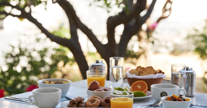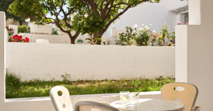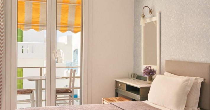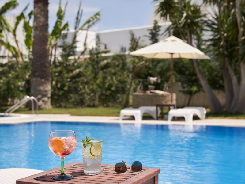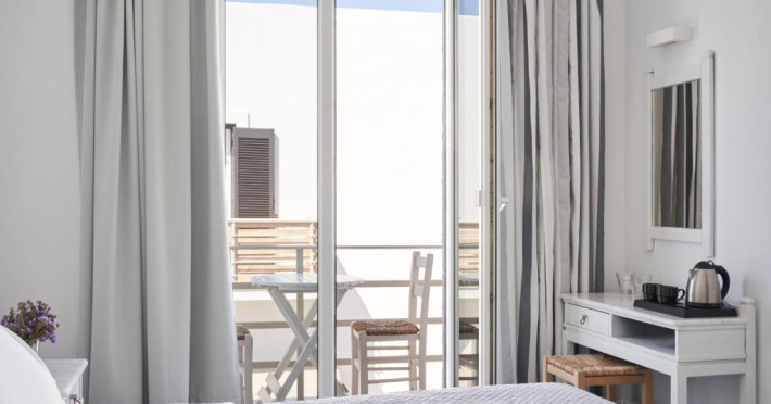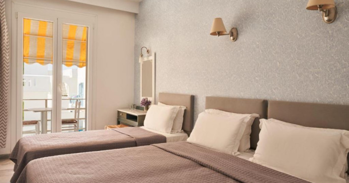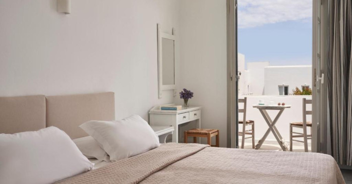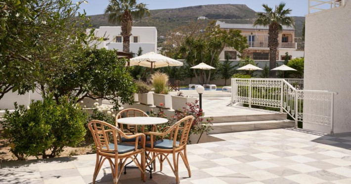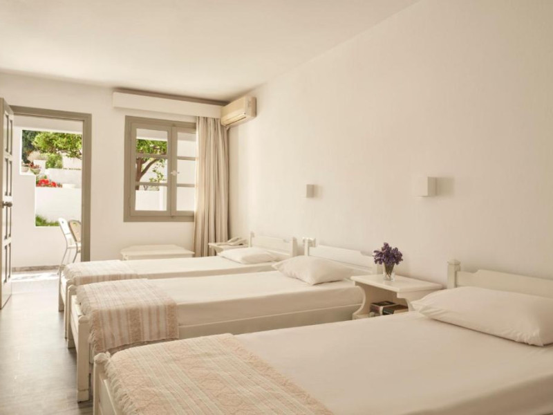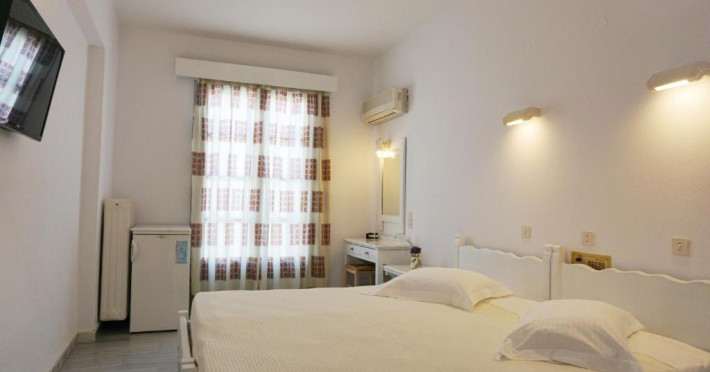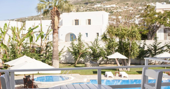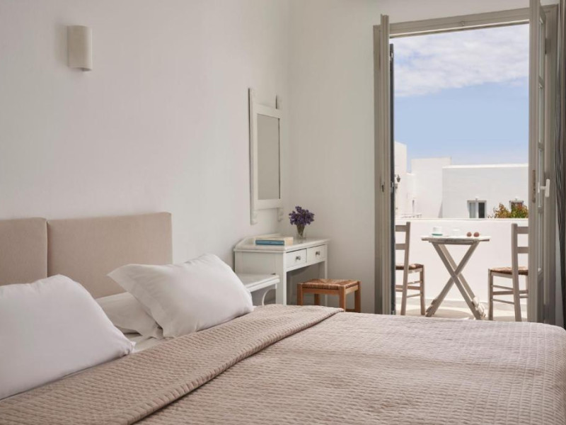 Hotelul dispune de piscină in aer liber cu șezlonguri și umbrele, snack bar și grădină. La doar cațiva pași se află portul principal din Parikia, de unde puteți lua feribotul către alte insule, precum și numeroase taverne tradiționale și magazine.