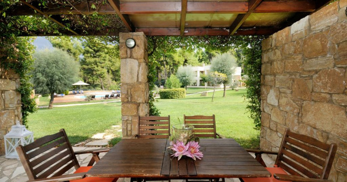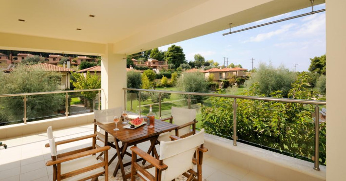 Cel mai apropiat aeroport este Aeroportul Salonic, situat la o distanță de 57 km. La cerere proprietatea organizează transfer la/de la aeroport contra cost.