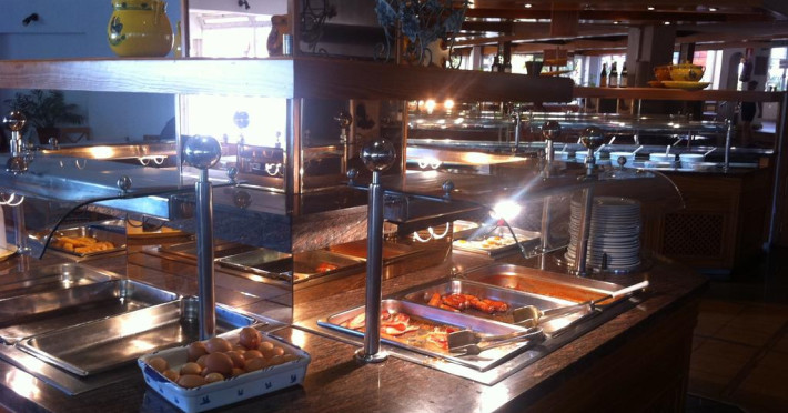 La Ponderosa Aparthotel oaspeții au la dispoziție un restaurant care servește mâncare în stil bufet. Masa poate fi servită atât în interior, cît si în aer liber, pe terasă, în funcție de vreme. Oaspeţii pot avea diverse băuturi răcoritoare sau alcoolice la bar. În cadrul proprietății există și o cafenea ideală pentru o gustare rapidă. Oaspeţii îşi pot pregăti micul dejun şi alte mese şi le pot savura chiar pe balcon.