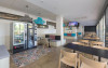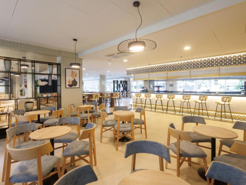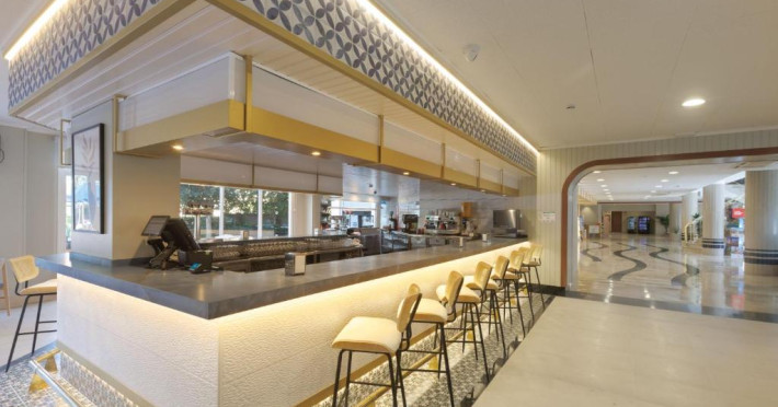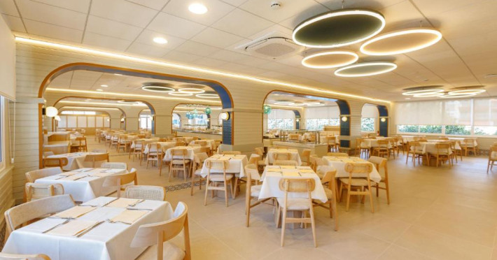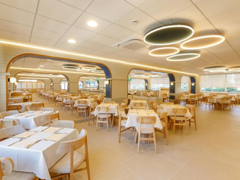 Oferă două piscine in aer liber, una dintre ele pentru copii, un bar cu gustări și un restaurant tip bufet cu bufet pentru copii.