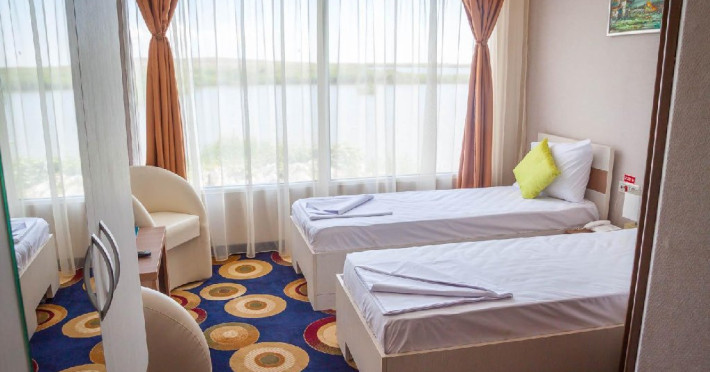 Camerele duble sunt fie cu pat matrimonial fie cu doua paturi twin.