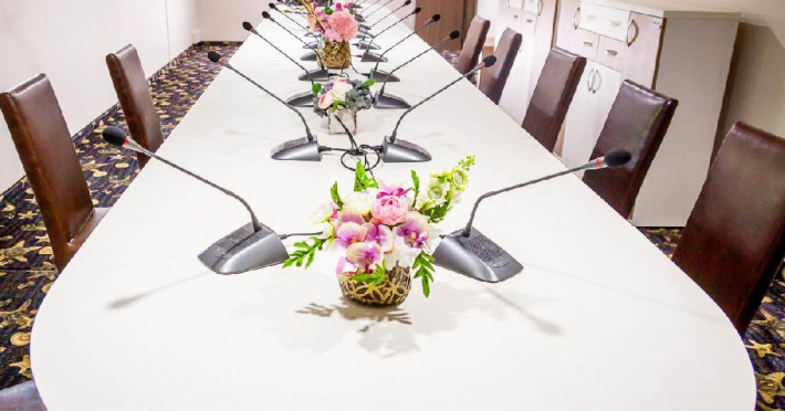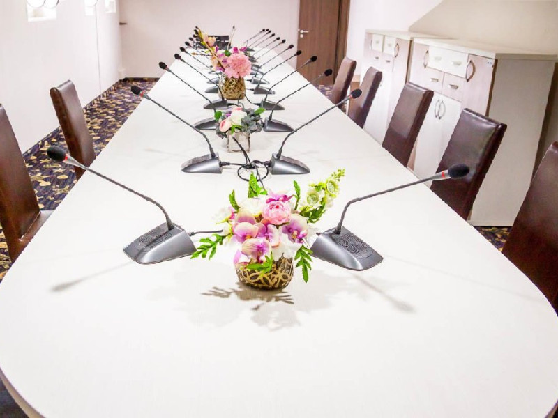 Sala de conferinta cu o capacitate de 24 locuri, prin suportul tehnic audio-video de ultima generatie ofera cadrul propice intalnirilor de afaceri, fiind ideala pentru sedinte, traininguri, prezentari si alte intruniri .