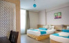 Camerele sunt decorate cu gust si dotate cu tot confortul - aer conditionat, telefon, televizor cu ecran plat, frigider, zona speciala pentru servirea mesei, facilitati de calcat, baie cu articole de toaleta gratuite si uscator de par, balcon.