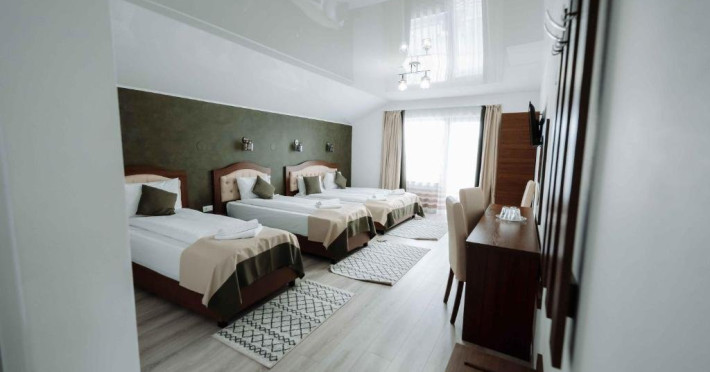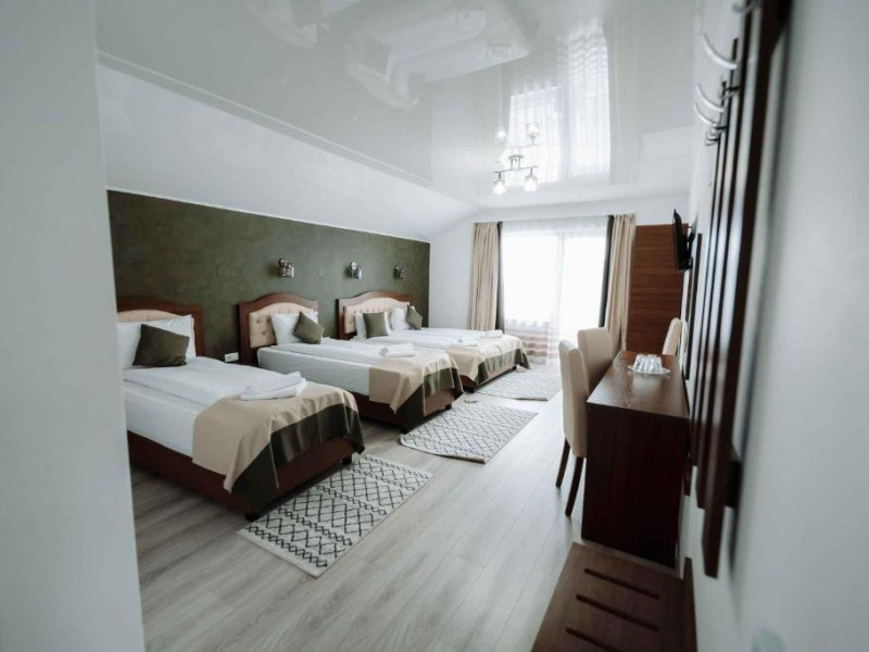 Complexul include doua vile, oferind un total de 17 camere. Vila 1 dispune de 9 camere: 7 camere duble si 2 camere cvadruple. Vila 2 ofera 8 camere: 5 camere triple cu balcon si 3 camere cvadruple cu balcon. Oaspetii se pot bucura de piscine interioare si exterioare, teren de sport, loc de joaca pentru copii si o terasa spatioasa toate situate intr-un cadru natural linistit. Tot confortul de care ai nevoie, intr-un singur loc.