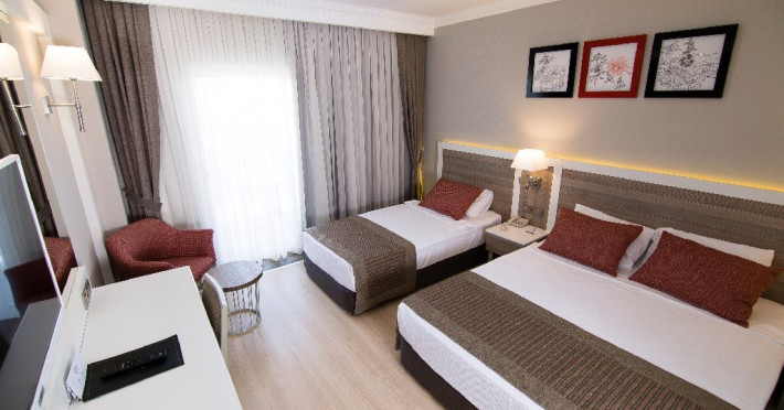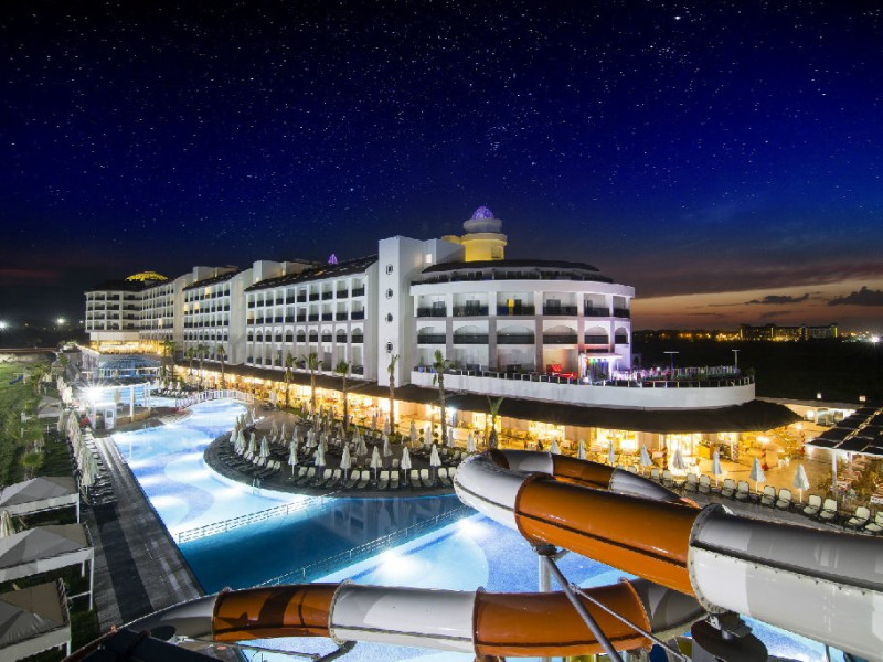 Facilitati hotel: Hotelul dispune de restaurant principal, 2 restaurante A la Carte (italian, turcesc), baruri, programe de animatie in timpul zilei si seara, piscina exterioara cu tobogan, piscina interioara, piscina exterioara pentru copii, magazine, salon de infrumusetare, centru SPA (cu baie turceasca, baie de aburi, sauna, masaj, peeling, tratamente - contra cost), beach bar, gimnastica, fitness, tennis de masa, aerobic, step, darts, boccia, biliard, volei pe plaja, sporturi acvatice (contra cost), sezlonguri si umbrelute la piscina, acces Wi-Fi (gratuit in lobby), disco, mini club pentru copii.