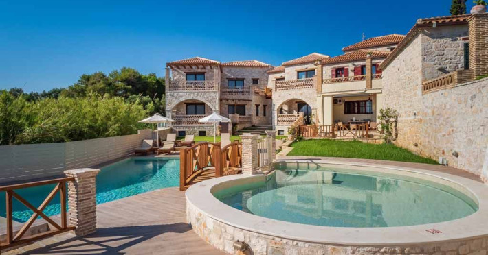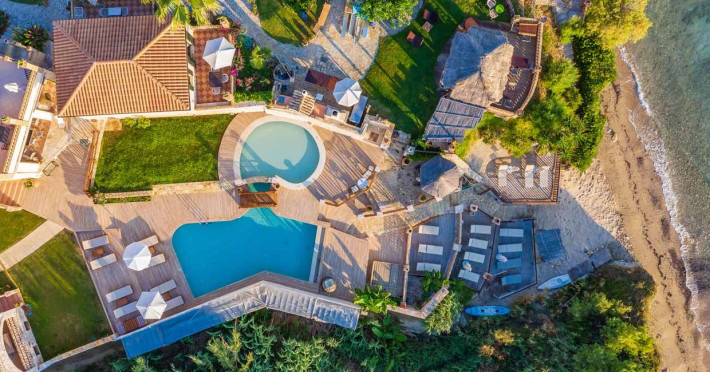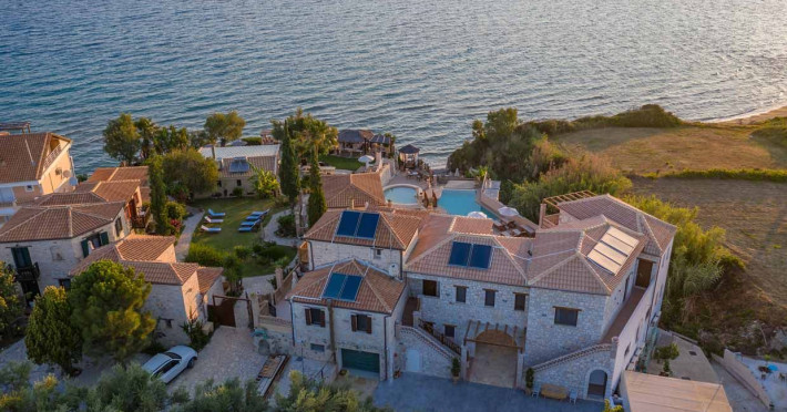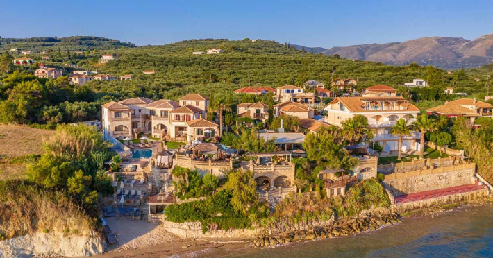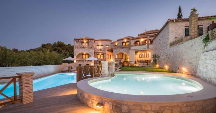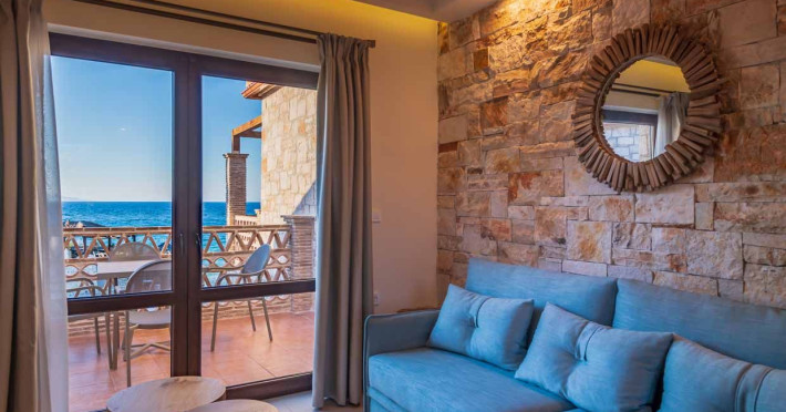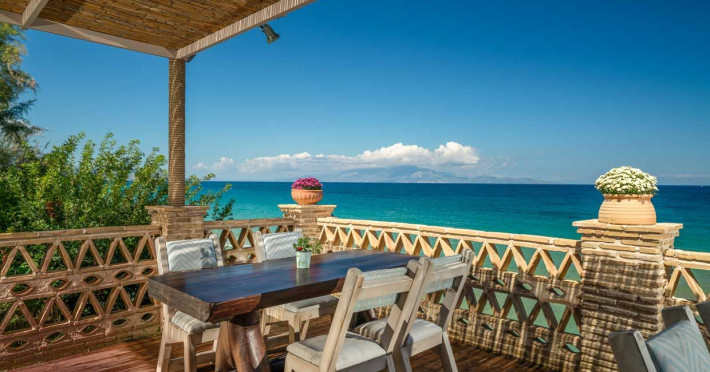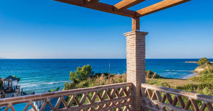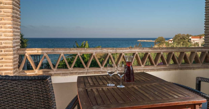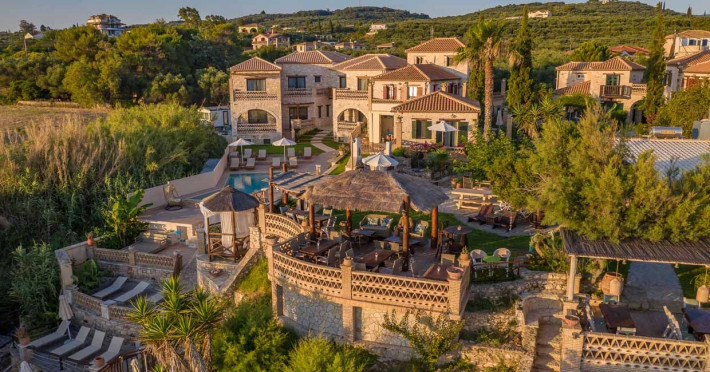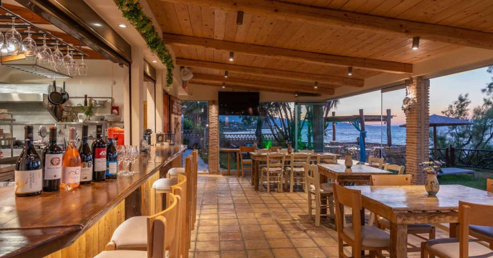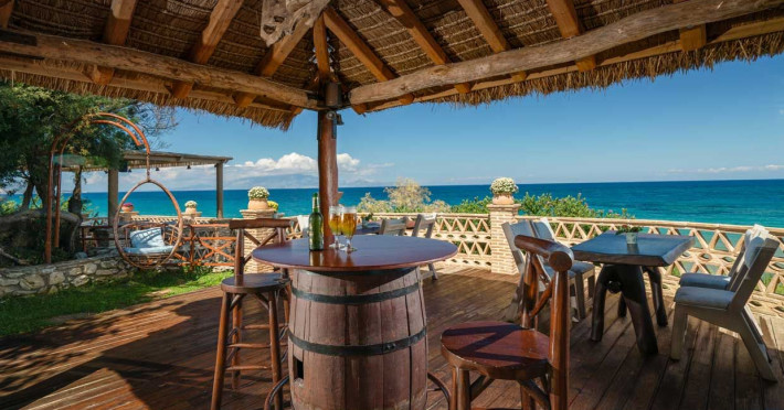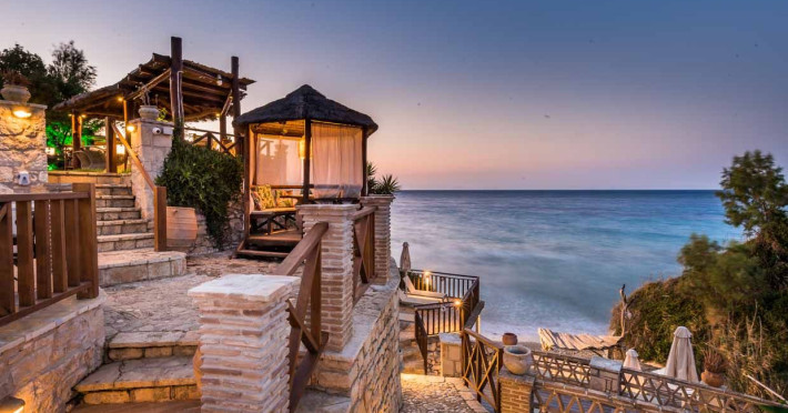 Set in the most picturesque of places, along the Northeastern coast of Psarou beach, Porta del mar traditional beach villas and deluxe apartments in Zakynthos (or Zante) Island offer the most qualitative accommodation for your holidays in Greece. The villas have been built by family Rigas back in 2003, using eco-friendly materials (natural stones, wood, handmade ceramics, crafts etc.), to rent by families or couples, seeking comfort, privacy and peaceful atmosphere directly on the beach. The villas are each uniquely decorated and fully equipped with sea-view verandas. Since 2008 we established our wine restaurant-bar, surrounded by beautiful gardens and sea-side terraces to offer you a unique dining experience. We use local products and recipes from Zakynthos and all over Greece. Relaxing music, tasteful plates and unique wines combined, create the perfect atmosphere for your evening. In 2020, we created our brand new wine cellar with a large variety of options mainly from the greek vineyard, where our guests can taste and explore their favorite wine varieties. 2020 was a landmark for us because of the important changes and additions ever made since 2004. An infinity style swimming pool, together with a new complex of five deluxe apartments were added next to the original buildings always in keeping with the general traditional style of the resort, designed to offer you modern amenities and new facilities. Honoring the reputation of Greek hospitality, our family and professional staff will welcome you here with joy. We will make sure you feel at home, providing exceptional custom made services to invigorate your body and soul. Escape from the routine of your daily life and take in the nature and culture of an unspoiled Greek holiday!Datorita dinamicitatii domeniului disponibilitatea ofertelor se modifica de la un moment la altul. De aceea ofertele sunt valabile in limita locurilor disponibile. Agentia nu este responsabila pentru eventualele neconcordante care pot aparea intre informatiile privind tarifele si alte detalii din site si informatiile primite in agentie. In aceste cazuri vor avea prioritate, intotdeauna, informatiile primite in agentie.