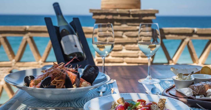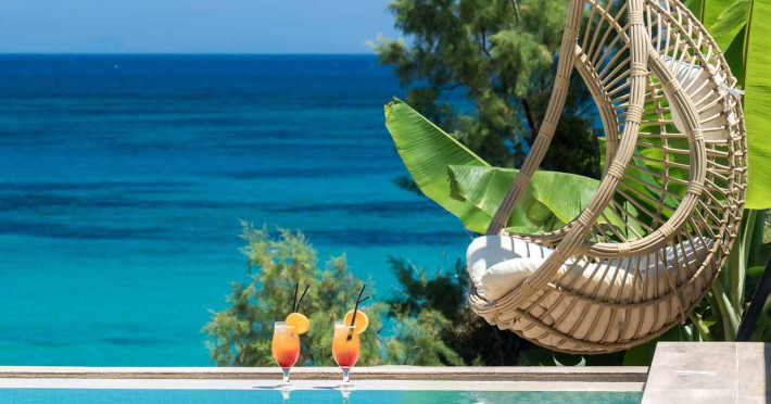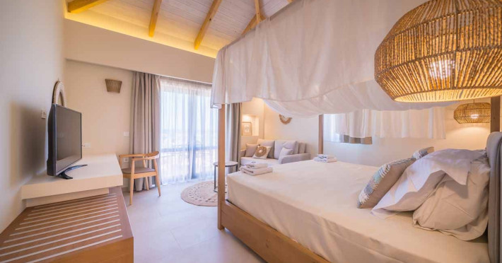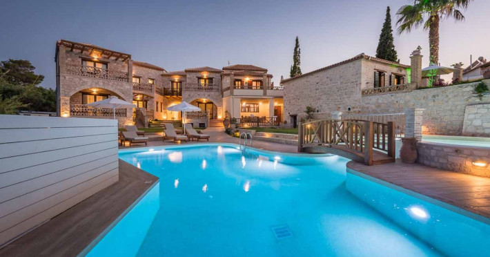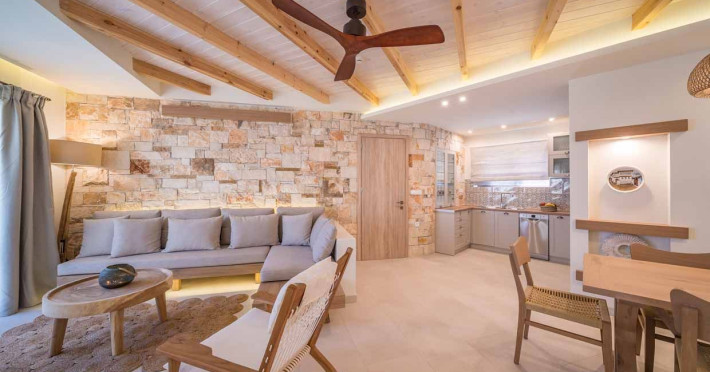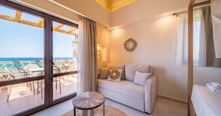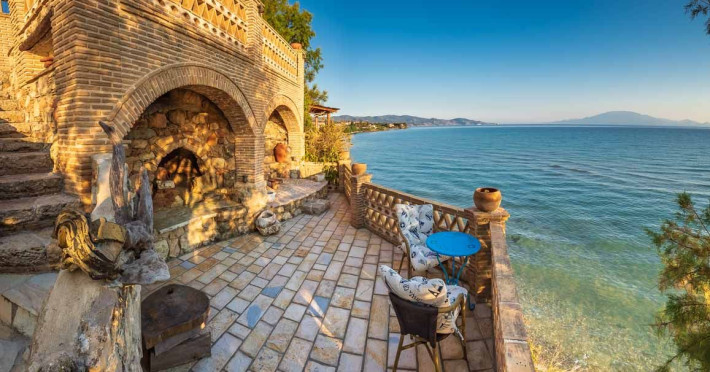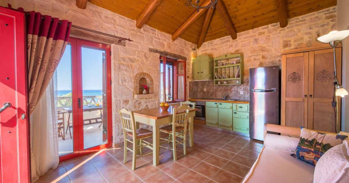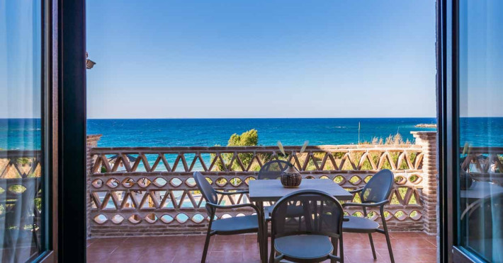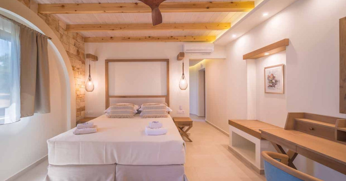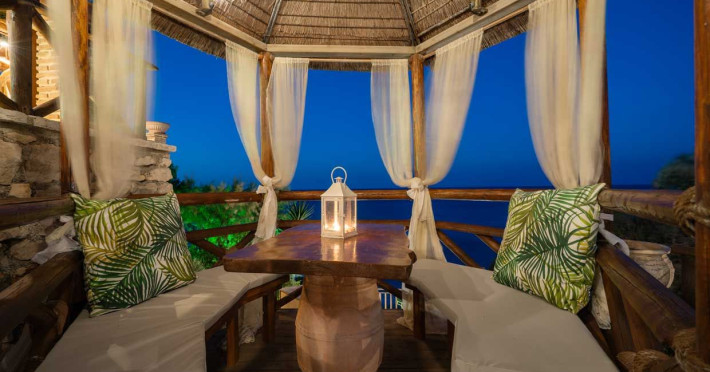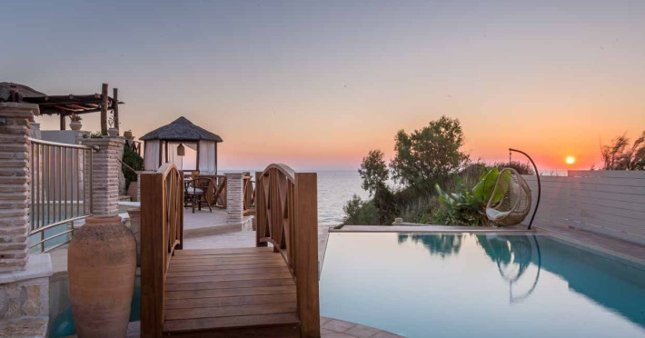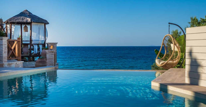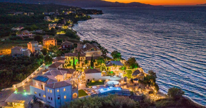 Set in the most picturesque of places, along the Northeastern coast of Psarou beach, Porta del mar traditional beach villas and deluxe apartments in Zakynthos (or Zante) Island offer the most qualitative accommodation for your holidays in Greece. The villas have been built by family Rigas back in 2003, using eco-friendly materials (natural stones, wood, handmade ceramics, crafts etc.), to rent by families or couples, seeking comfort, privacy and peaceful atmosphere directly on the beach. The villas are each uniquely decorated and fully equipped with sea-view verandas. Since 2008 we established our wine restaurant-bar, surrounded by beautiful gardens and sea-side terraces to offer you a unique dining experience. We use local products and recipes from Zakynthos and all over Greece. Relaxing music, tasteful plates and unique wines combined, create the perfect atmosphere for your evening. In 2020, we created our brand new wine cellar with a large variety of options mainly from the greek vineyard, where our guests can taste and explore their favorite wine varieties. 2020 was a landmark for us because of the important changes and additions ever made since 2004. An infinity style swimming pool, together with a new complex of five deluxe apartments were added next to the original buildings always in keeping with the general traditional style of the resort, designed to offer you modern amenities and new facilities. Honoring the reputation of Greek hospitality, our family and professional staff will welcome you here with joy. We will make sure you feel at home, providing exceptional custom made services to invigorate your body and soul. Escape from the routine of your daily life and take in the nature and culture of an unspoiled Greek holiday!Datorita dinamicitatii domeniului disponibilitatea ofertelor se modifica de la un moment la altul. De aceea ofertele sunt valabile in limita locurilor disponibile. Agentia nu este responsabila pentru eventualele neconcordante care pot aparea intre informatiile privind tarifele si alte detalii din site si informatiile primite in agentie. In aceste cazuri vor avea prioritate, intotdeauna, informatiile primite in agentie.
