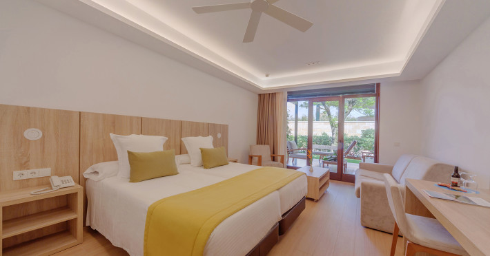 Around 2 km from a beach is located the hotel PortBlue Club Pollentia & Spa. The city centre is around 2,5 km away. There is a shuttle between the hotel and the airport (for a fee). On the beach are cushions and sun umbrellas available. The air-conditioned hotel has a 24h reception (check-in is possible around the clock), Wi-Fi, a shop, cash machine, a jacuzzi as well as parking spaces (for a fee). In the outdoor area of the property you will find a pool (open all year), where sun loungers, sun umbrellas and pool towels are available for free. For the young hotel guests there is a playground. Kid`s chairs are available. You can store your luggage in the hotel's storage room. There is also a laundry and ironing service available at an additional cost to customers. If necessary, you can contact the medical centre (for a fee). Guests at the accommodation can get a wake-up call from the hotel personnel. The energy supply is 220 Volts. If you want to explore the holiday region, you can use the car and motorbike rental service close to the hotel (extra fee). At the reception, tickets are offered for excursions in the area. In your hotel, a lot of focus is placed on sustainability. This includes among others the hotel`s own recycling bins. That is why the hotel PortBlue Club Pollentia & Spa was also awarded a sustainability certificate. American Express, Euro/Master Card and Visa are accepted as means of payment. Catering As catering services the hotel offers all-inclusive. Breakfast is offered from the buffet. Lunch and dinner are also served à la carte or from the buffet. For the meals, there are a restaurant with terrace and several bars. Distances
