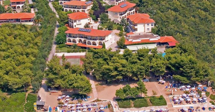 Atat copiii cat si adultii vor fi incantati de vacanta petrecuta in acest minunat complex de 4*,datorita asezarii sale sub forma de amfiteatru pe dealul ce este acoperit cu vegetatie bogata si luxurianta, privind catre marea Egee care le ofera un spectacol aparte ori de cate ori privesc spre aceasta.Localizare