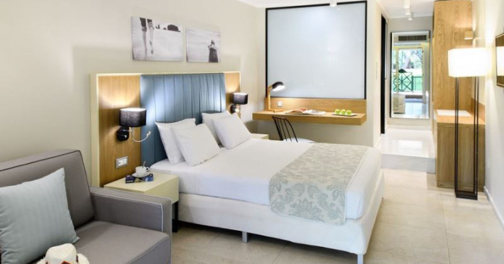 Atat copiii cat si adultii vor fi incantati de vacanta petrecuta in acest minunat complex de 4*,datorita asezarii sale sub forma de amfiteatru pe dealul ce este acoperit cu vegetatie bogata si luxurianta, privind catre marea Egee care le ofera un spectacol aparte ori de cate ori privesc spre aceasta.