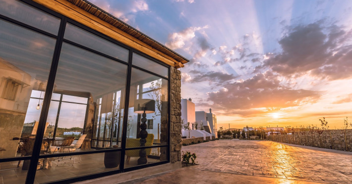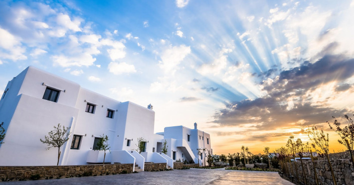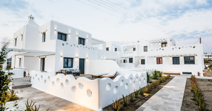 An exquisite, all suites and villas Cycladic complex, created for those who value intimacy combining luxury within a serene ambience, Portes Mykonos is the perfect scenery for an extraordinary vacation experience. Boasting a privileged location just 2 km away from Mykonos Chora and 1,5 km from Psarou, the most cosmopolitan beach of the island, the spectacular property offers the perfect escape for exclusivity, intimate privacy and sheer luxury.Blending traditional white-washed architecture with contemporary touches, 13 spacious luxury suites and villas provide modern facilities and a selection of services to spoil the most discerning guests.Lose track of time soaking in your private pool, live the most idyllic honeymoon embraced by the exclusive atmosphere and indulge in the exuberance of Mykonos, at your own private luxury sanctuary.An exquisite, all suites and villas Cycladic complex, created for those who value intimacy combining luxury within a serene ambience, Portes Mykonos is the perfect scenery for an extraordinary vacation experience. Boasting a privileged location just 2 km away from Mykonos Chora and 1,5 km from Psarou, the most cosmopolitan beach of the island, the spectacular property offers the perfect escape for exclusivity, intimate privacy and sheer luxury.Blending traditional white-washed architecture with contemporary touches, 13 spacious luxury suites and villas provide modern facilities and a selection of services to spoil the most discerning guests.Lose track of time soaking in your private pool, live the most idyllic honeymoon embraced by the exclusive atmosphere and indulge in the exuberance of Mykonos, at your own private luxury sanctuary.