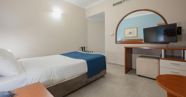Hotelul dispune de camere luminoase cu balcon privat, aer condiționat și TV prin satelit. La piscina in aer liber cu terasă pentru plajă, turiștii se pot relaxa pe șezlonguri, savurand băuturi răcoritoare de la barul piscinei.