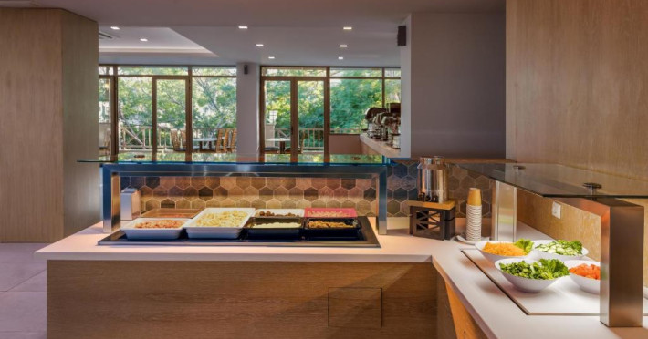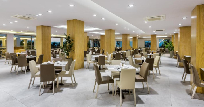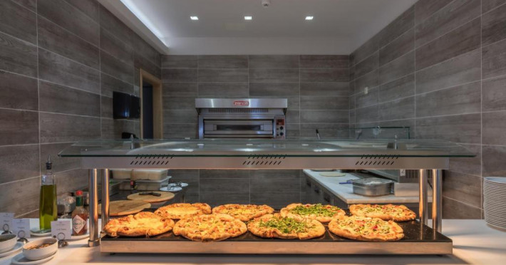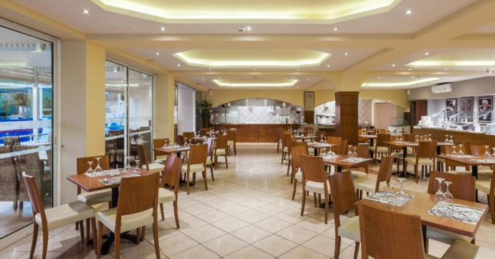 Porto Bello Beach Hotel găzduiește un restaurant care servește mancăruri din bucătăria grecească, italiană și mediteraneană. La cerere, oaspeții pot beneficia și de preparate vegetariene și fără gluten.