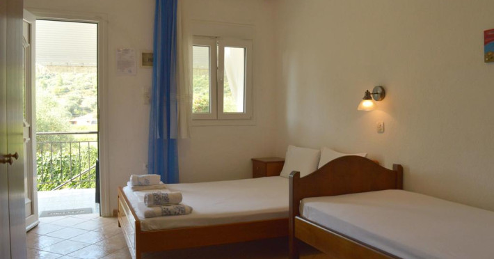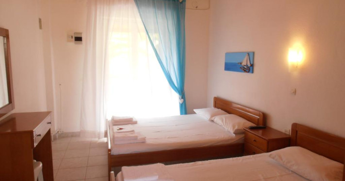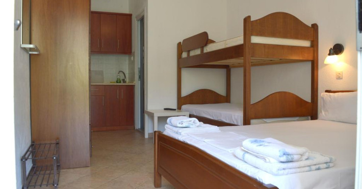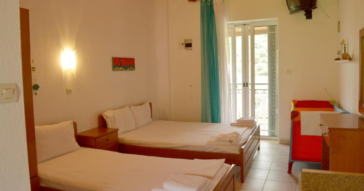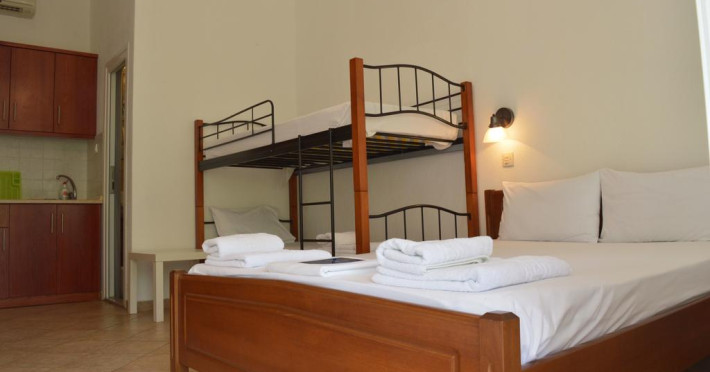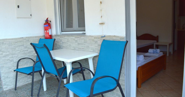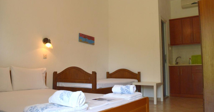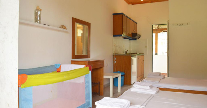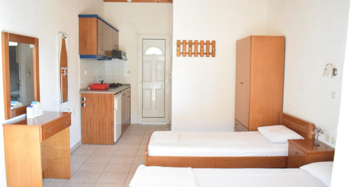 Unele camere au balcon cu vedere la mare, unde oaspeții pot admira apusul sau răsăritul soarelui. Camerele confortabile de la Porto Blue Studios sunt dotate cu pardoseală de gresie/ marmură și aer condiționat. Oaspeții au acces gratuit la serviciul Wi-fi în camere. Fiecare unitate de cazare include o chicinetă utilată cu frigider, plită de gătit și ustensile de bucătărie. Proprietatea oferă camere pentru familie cu o suprafață mai mare și un număr mai mare de paturi față de cele standard. Se pot rezerva de asemenea camere pentru nefumători.