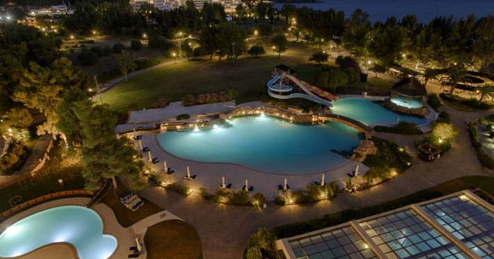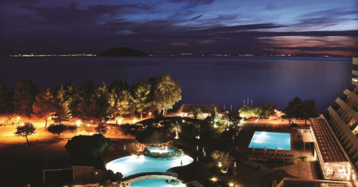 Plaja privata, 2 piscine interioare si 2 piscine in aer liber, terenuri de tenis, centru de fitnes, un centru spa, centru de conferinte, facilitati de banchet, o sala de bal, 4 resaturante care servesc mancaruri mediteraneene sau traditionale grecesti, 5 baruri .