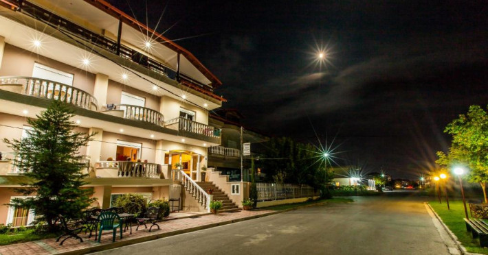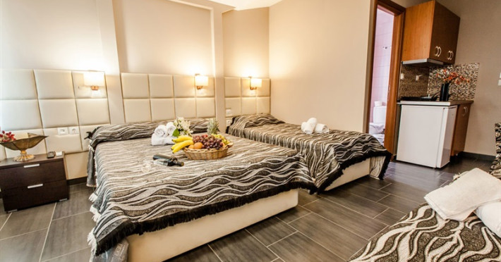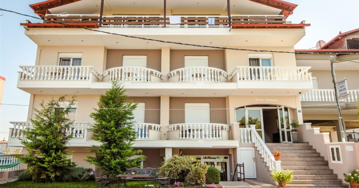 Hotelul este situat la doar 250 de metri de plaja Kallithea din Paralia Katerinis, la 5 minute de mers pe jos se află taverne care servesc specialități mediteraneene, baruri și magazine.