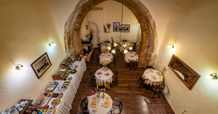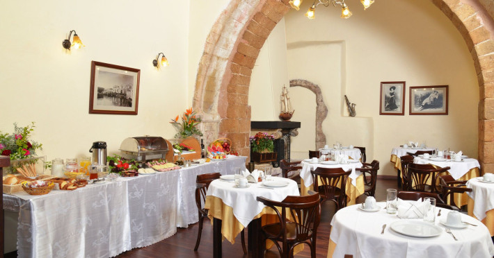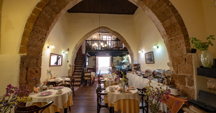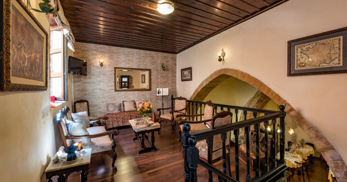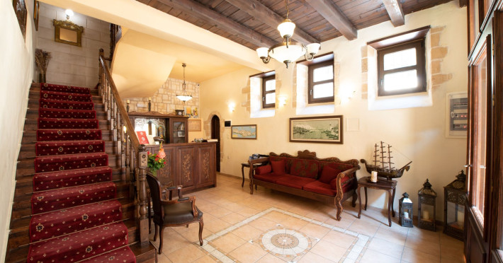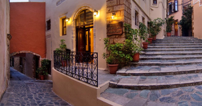 PORTO DEL COLOMBO Boutique hotel is a traditional A class hotel. Housed in an imposing, tall, 650 year old building, has gathered a rich history over the centuries. During the Ottoman days, inhabited by senior members of the Turkish military who made many changes in the architecture of the building â still retained the metal rings nailed to the walls. In the early 19th century, the building was used as a French embassy and later inhabited by the great Greek politician Eleftherios Venizelos, who used it as a political office until moving to Athens when he took power as prime minister of Greece. The operation began in 1982, since then there have been many improvement renovations. The last renovation âaccording to the instructions of the competent archaeological service; completed in 2013. Important sample of the Venetian architecture is the breakfast room on the ground floor, with the huge arches and the very high ceilings. The hotel has 10 rooms including two maisonettes with all modern conveniences, decorated with particularly beautiful hand-made furniture. Porto Del Colombo is open all year round.Datorita dinamicitatii domeniului disponibilitatea ofertelor se modifica de la un moment la altul. De aceea ofertele sunt valabile in limita locurilor disponibile. Agentia nu este responsabila pentru eventualele neconcordante care pot aparea intre informatiile privind tarifele si alte detalii din site si informatiile primite in agentie. In aceste cazuri vor avea prioritate, intotdeauna, informatiile primite in agentie.