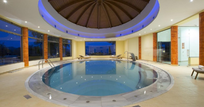 Facilitati hotel: Hotelul ofera turistilor sai numeroase facilitati si servicii: receptie deschisa non stop, trei restaurante, doua baruri, gradina, terasa, incalzire, aer conditionat, spalatorie, teren de joaca exterior pentru copii, centru spa wellness, doua piscine interioare, una dintre ele este cu apa incalzita si hidromasaj, jacuzzi, doua piscine exterioare, sauna, zona de infrumusetare, sala de sport cu vedere la mare, trei terenuri de tenis cu instalatie de iluminat nocturn, teren de volei pe plaja, sala de yoga orientata catre rasarit, aqua gym (aerobic in apa, disponibil pentru lunile iulie si august), centru de conferinte si evenimente, internet wireless gratuit si accesibil in majoritatea zonelor complexului, plaja privata cu sezlonguri si umbrele oferite gratuit oaspetilor hotelului. Pentru cei mai mici oaspeti exista Kids Club. Acesta este disponibil doar pentru copiii cu varste cuprinse intre 4 si 2 ani (cei cu varsta de pana in 4 ani vor fi supravegheati de parinti). De asemenea exista si programe speciale, cum ar fi sesiunile de pictura, lucru manual si jocuri in grup.