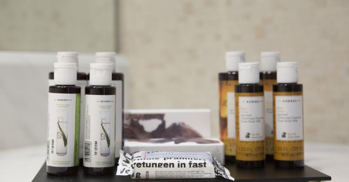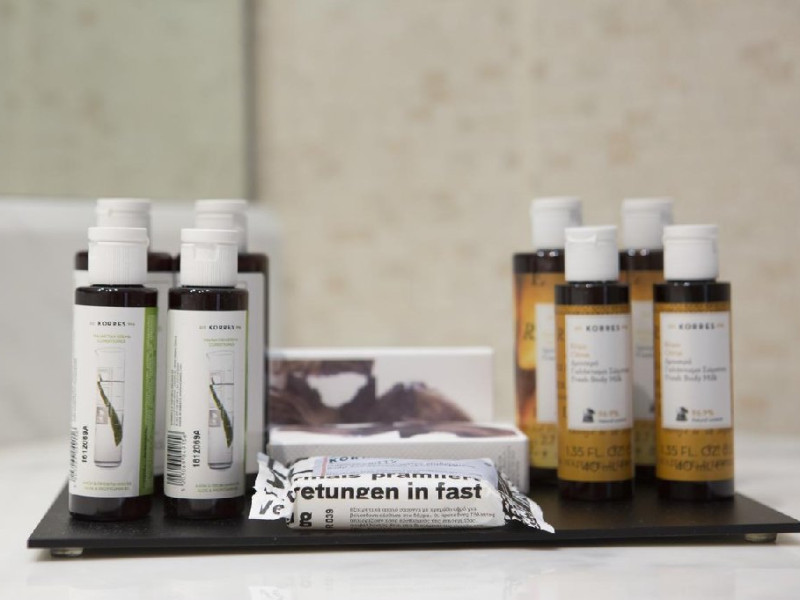Facilitati camere: Hotelul are total de 138 de camere, dispuse in cladiri separate. Sunt mobilate modern, dotate cu: aer conditionat, telefon, minibar (contracost), Wi-Fi, seif, fierbator, aparat pentru cafea si ceai, televizor cu ecran plat si transmisie prin satelit, paturi de calitate superioara Duxiana, balcon sau terasa, baie privata cu uscator de par si produse cosmetice naturale Korres, papuci, prosoape de plaja.