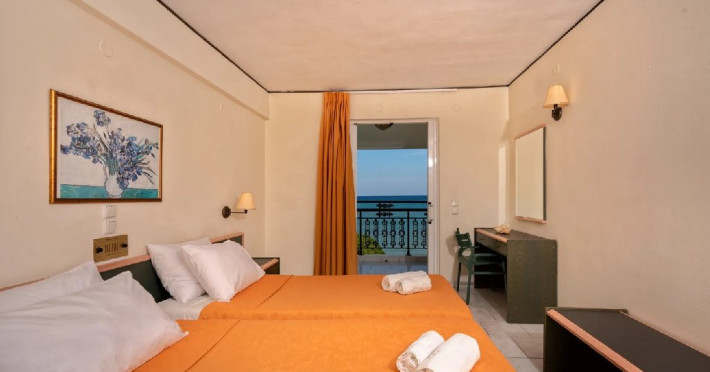 Apartamentul compus din living si dormitor, capacitate de cazare pana la 5 persoane, cu paturi twin si pat matrimonial, cu vedere la mare sau la piscina, baie cu dus sau cada, articole de toaleta, uscator de par, bucatarie utilata, tv, aer conditionat, balcon/terasa.