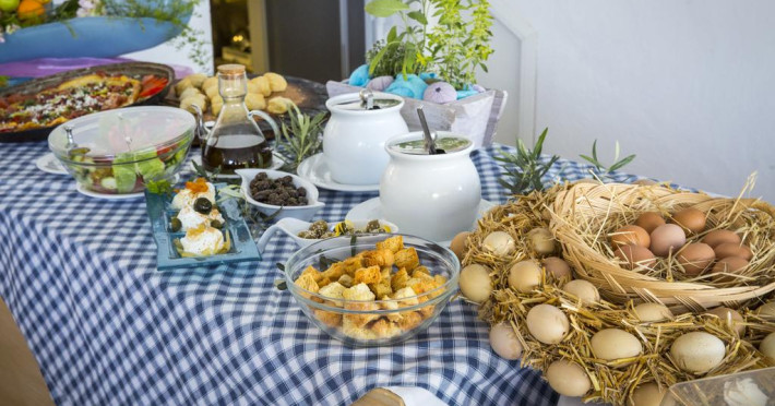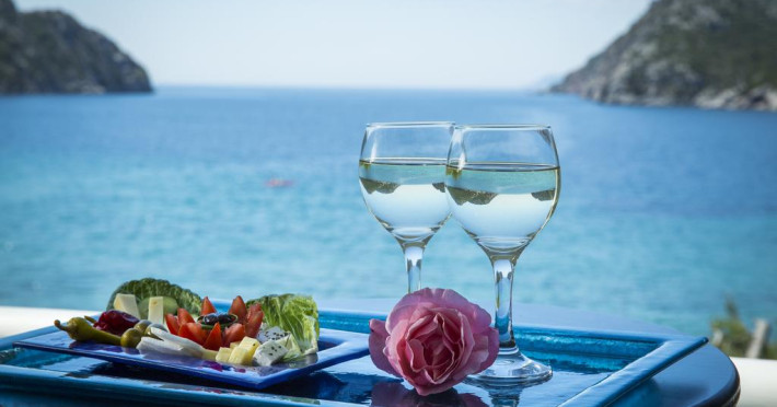 Porto Koufo servește zilnic un mic dejun tip bufet în zona de luat masa. La proprietate există un snack-bar care oferă cafea, băuturi și gustări. Masa poate fi servită atât în interior, cît si în aer liber, pe terasă, în funcție de vreme.