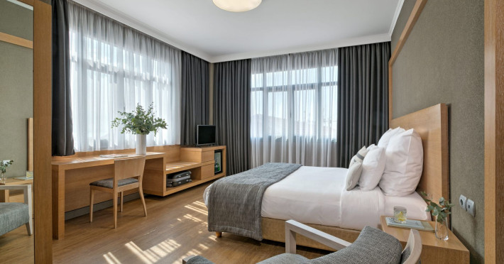 Porto Palace Hotel & Conference Center constitutes a unique hospitality choice in Thessaloniki. Housed in a historical building of 1913 and preserving its industrial architecture, Porto Palace Hotel stands out among other hotels in town.