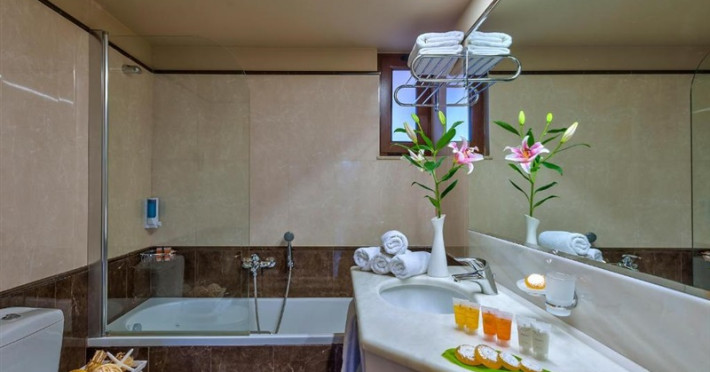 Designul si decorarea camerelor indeplinesc cele mai inalte standarde estetice, iar interioarele hotelului creeaza o atmosfera de eleganta si stil de neegalat, la cateva minute distanta de plajele si de cafenelele si restaurantele din Porto Platanias.Localizare